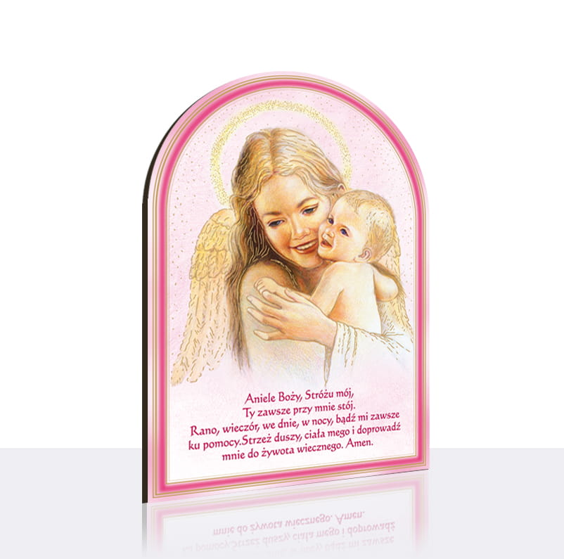 Obrazek religijny z Aniołem Stróżem. Na produkcie znajduje się modlitwa do Anioła Stróża. Obrazek wykonany jest na drewnopodobnym materiale HDF, wycinany laserem. Całość obrazka tworzy wspaniałą kompozycję, która wspaniale sprawdzi się jako upominek dla dziecka i element dekoracyjny do pokoju pociechy.
