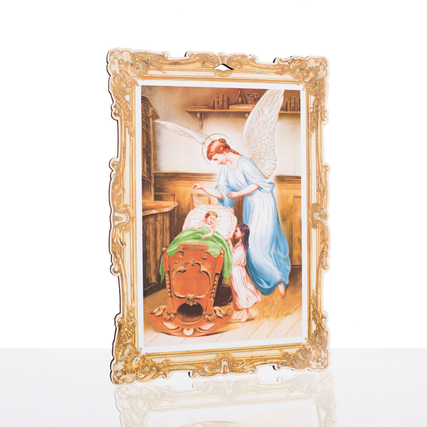 Wyjątkowej jakości drewniany obrazek z wizerunkiem Anioła Stróża. Kolory i grafika artykułu subtelnie podkreślają każdy szczegół postaci. Produkt wykonany z wysokiej jakości materiału drewnopochodnego, którego solidna forma urzeknie każdego. Obrazek święty Anioł Stróż charakteryzuje się wspaniałym złoceniem, które akcentuje poszczególne detale kompozycji. Powyższy produkt sprawdzi się jako miły upominek, który w subtelny sposób zaakcentuje wiarę. Możliwość wykonania na odwrocie dedykacji sprawia, że produkt staje się wyjątkowym podarunkiem na uroczystość.