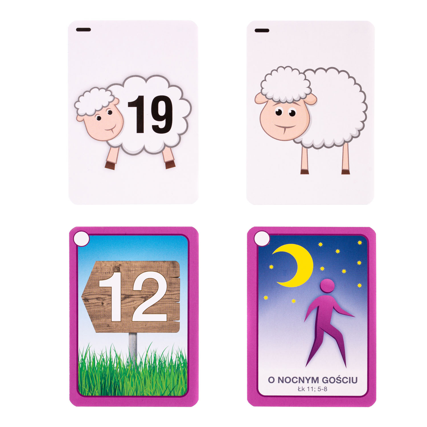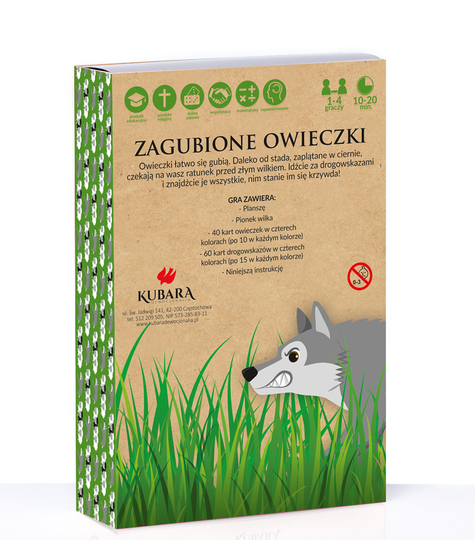 Przedstawiamy wyjątkowy produkt, który poprzez zabawę rozwija u dzieci wiele potrzebnych umiejętności tj.wykonywanie działań matematycznych i zapamiętywanie. Gra planszowa Zagubione owieczki charakteryzuje się kooperacyjną formą gry – aby wygrać trzeba współpracować z innymi graczami. Dzięki temu dzieci uczą się współpracować ze sobą, wspierają się i pomagają sobie nawzajem. Poszczególne elementy gry charakteryzują się wyrazistymi kolorami i piękną grafiką. Na jednej stronie “drogowskazów” znajdują się ilustracje i fragmenty przypowieści znajdujących się w Piśmie Świętym. Jest to bardzo dobra okazja skłaniająca do zapoznania się z poszczególnymi fragmentami z Biblii.