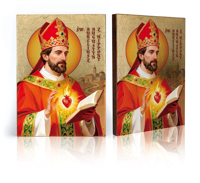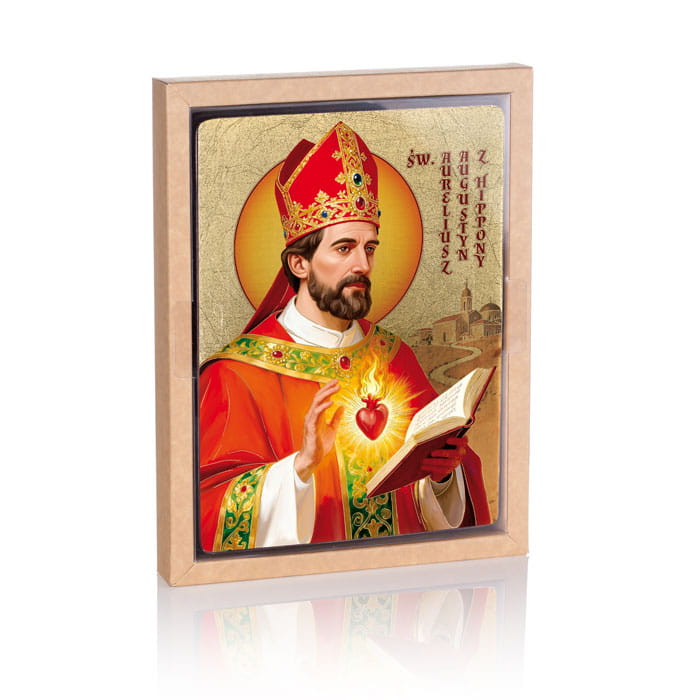Na ikonie znajduje się wizerunek Świętego Augustyna z Hippony. Wszystkie ikony dostępne w naszej ofercie wykonane są z najwyższej jakości materiałów. Drewno wykorzystywane do produkcji ikon dobierane jest w niezwykle staranny sposób. Wizerunek naniesiony na ręcznie złoconą deskę. Produkt wspaniale sprawdzi się jako jedyny w swoim rodzaju upominek dla najbliższych.