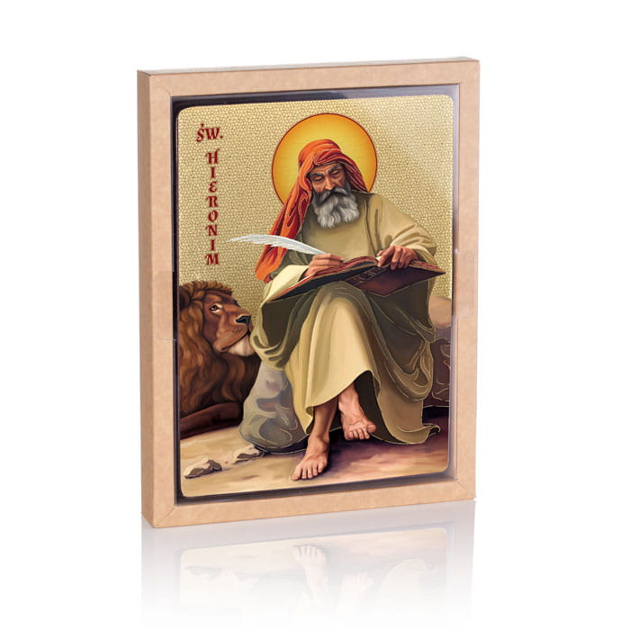 Święty Hieronim (ok. 347–420) był kapłanem, teologiem i tłumaczem Biblii na łacinę – przekład ten znany jest jako Wulgata. Był jednym z najwybitniejszych uczonych Kościoła, znanym z ogromnej wiedzy i surowego życia ascetycznego. Ostatnie lata spędził w Betlejem, gdzie prowadził klasztor i oddawał się pracy pisarskiej. Jest patronem tłumaczy, uczonych, bibliotekarzy i teologów. Jego wspomnienie liturgiczne przypada 30 września.