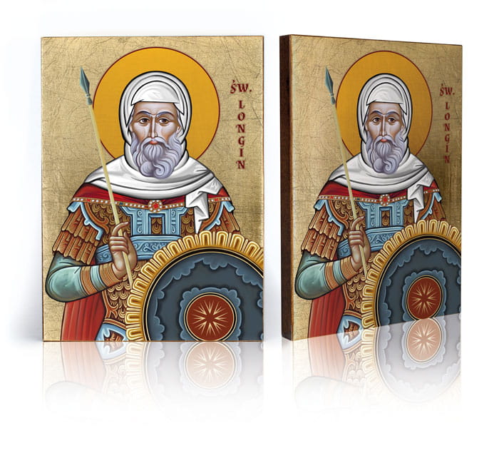 Na ikonie znajduje się wizerunek Świętego Longina z Cezarei Kapadockiej. Wszystkie ikony dostępne w naszej ofercie wykonane są z najwyższej jakości materiałów. Drewno wykorzystywane do produkcji ikon dobierane jest w niezwykle staranny sposób. Wizerunek naniesiony na ręcznie złoconą deskę. Produkt wspaniale sprawdzi się jako jedyny w swoim rodzaju upominek dla najbliższych.