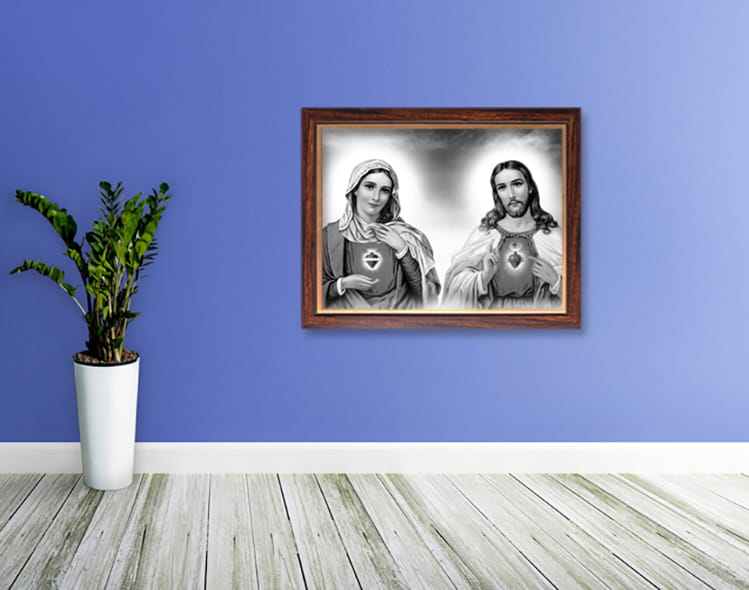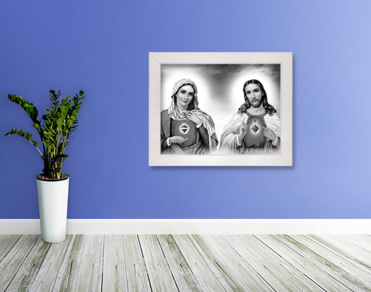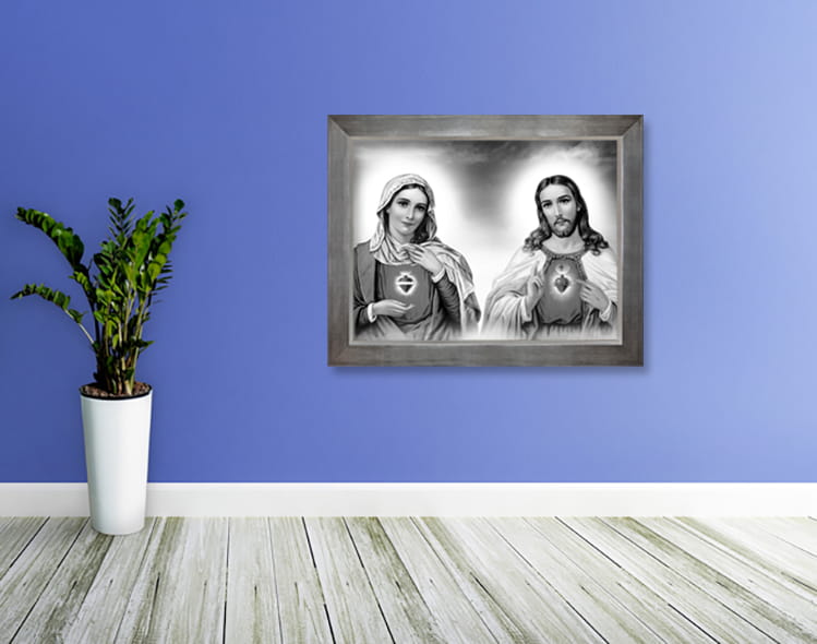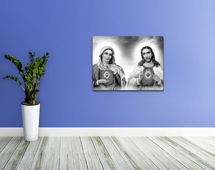 Wyjątkowy produkt przedstawiający wizerunek Najświętszego Serca Jezusa i Maryi. Obraz wykonany na wysokiej jakości płótnie.