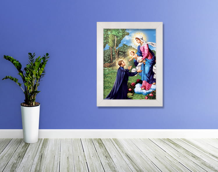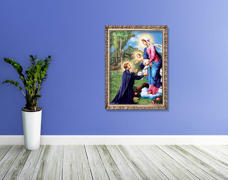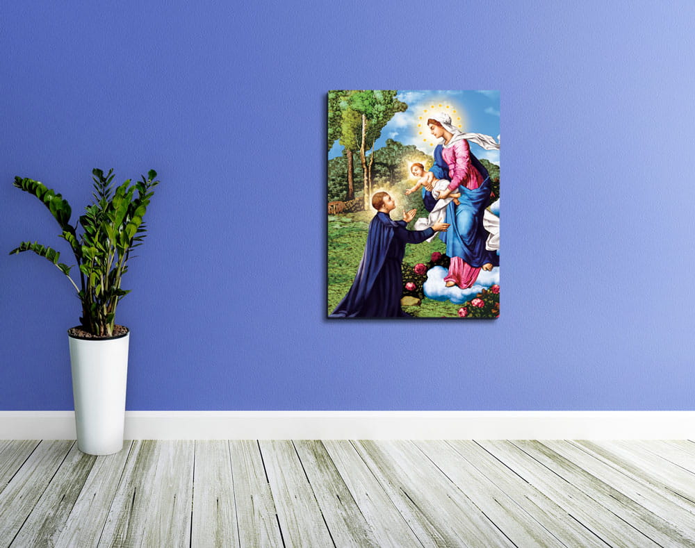 Obrazy religijne na płótnie dostępne w naszej ofercie to niezwykła dekoracja wnętrz, która łączy elegancję z subtelną symboliką religijną. Widok świętego obrazu przypomni o wartości codziennej modlitwie oraz nieustannej opiece świętych. Obrazy religijne wspaniale sprawdzą się jako dekoracja kościołów oraz domów, podkreślą poglądy religijne oraz pomogą w codziennej modlitwie. Bogata oferta obrazów świętych sprawia, że z łatwością wybiorą Państwo wizerunek który idealnie sprawdzi się w danym wnętrzu, przyozdobi ściany salonu, sypialni czy pokoju dziecinnego.