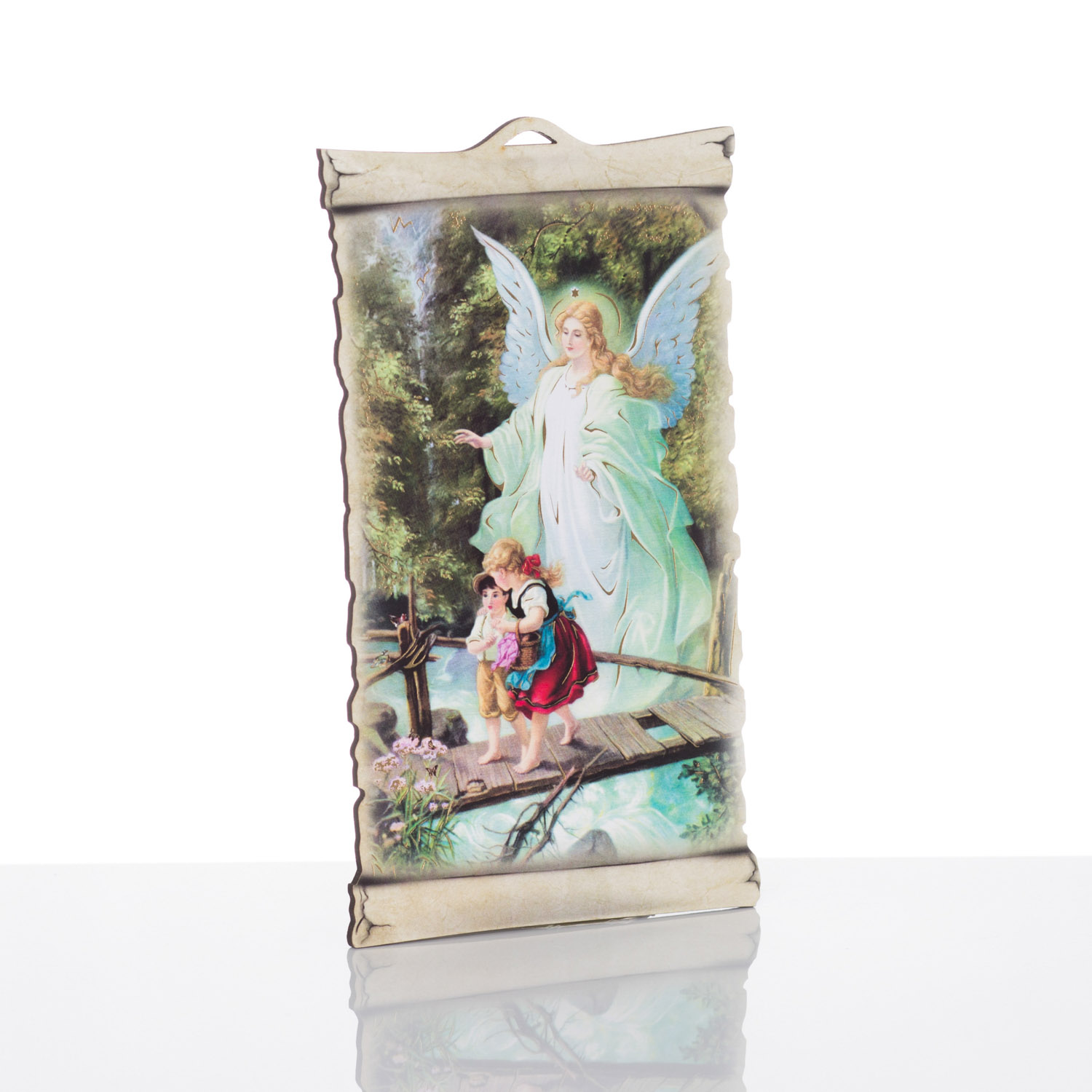 Wyjątkowej jakości drewniany obrazek z wizerunkiem Anioła Stróża. Kolory i grafika obrazka subtelnie podkreślają każdy szczegół postaci. Produkt wykonany z wysokiej jakości materiału drewnopochodnego, którego solidna forma urzeknie każdego. Obrazek święty Anioł Stróż charakteryzuje się wspaniałym złoceniem, które akcentuje poszczególne detale kompozycji. Produkt sprawdzi się jako miły upominek, który w subtelny sposób zaakcentuje wiarę.