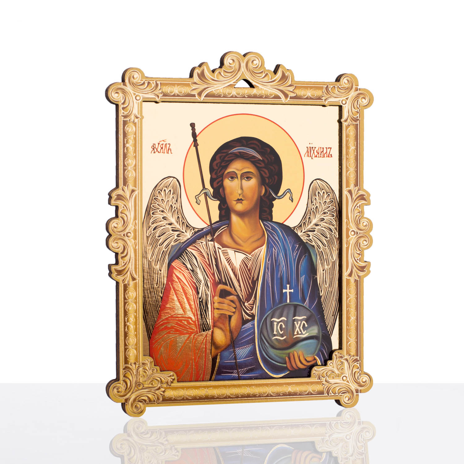 Wyjątkowej jakości obrazek święty z wizerunkiem Archanioła Michała. Kolory i grafika obrazka świętego subtelnie podkreślają każdy szczegół postaci. Produkt wykonany z wysokiej jakości materiału drewnopochodnego, którego solidna forma urzeknie każdego. Obrazek święty Archanioł Michał charakteryzuje się wspaniałym złoceniem, które akcentuje poszczególne detale kompozycji. Powyższy produkt sprawdzi się jako miły upominek i w subtelny sposób zaakcentuje wiarę.