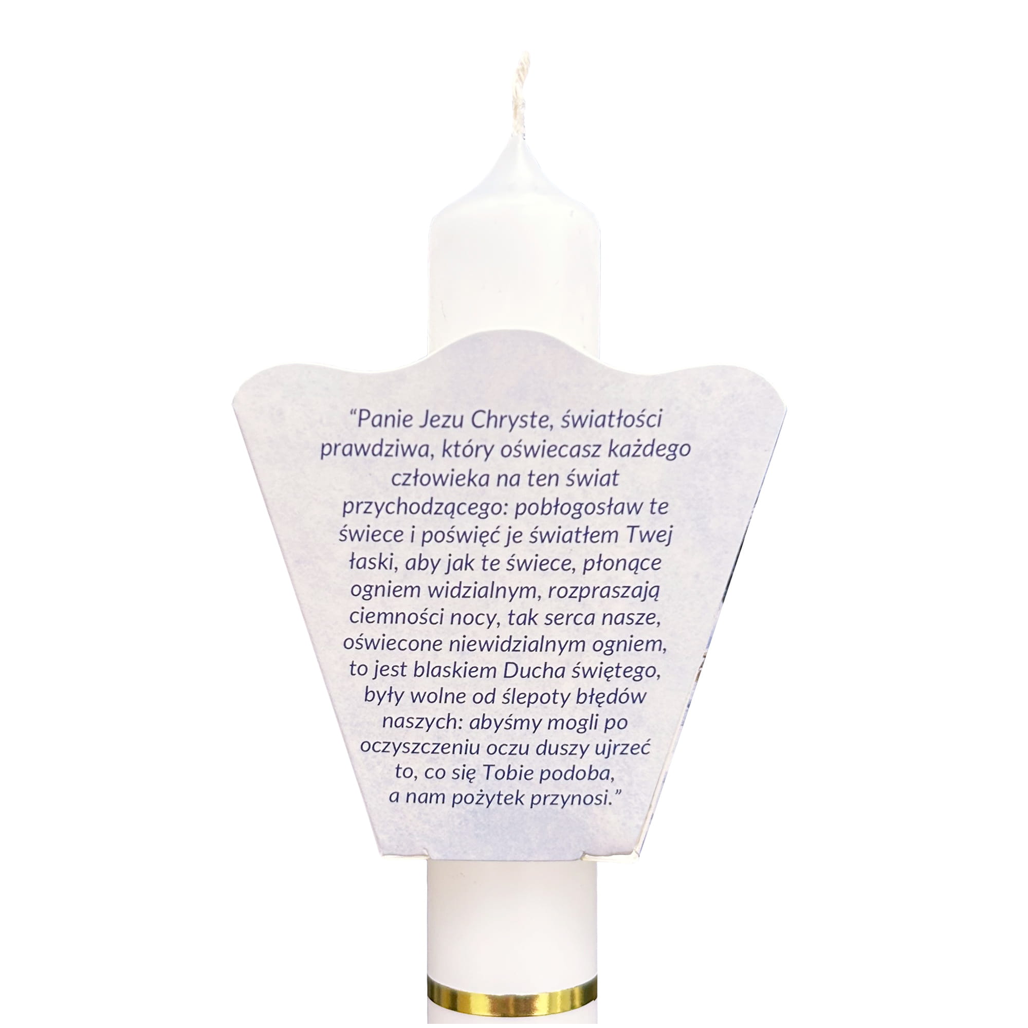 Okapnik na świecę wykonany z wysokiej jakości kartonu Craft o gramaturze 360 g, przeznaczony do świec gromnicznych oraz innych świec liturgicznych. Produkt skutecznie zabezpiecza dłonie przed spływającym woskiem, a jednocześnie stanowi estetyczną i symboliczną ozdobę świecy.