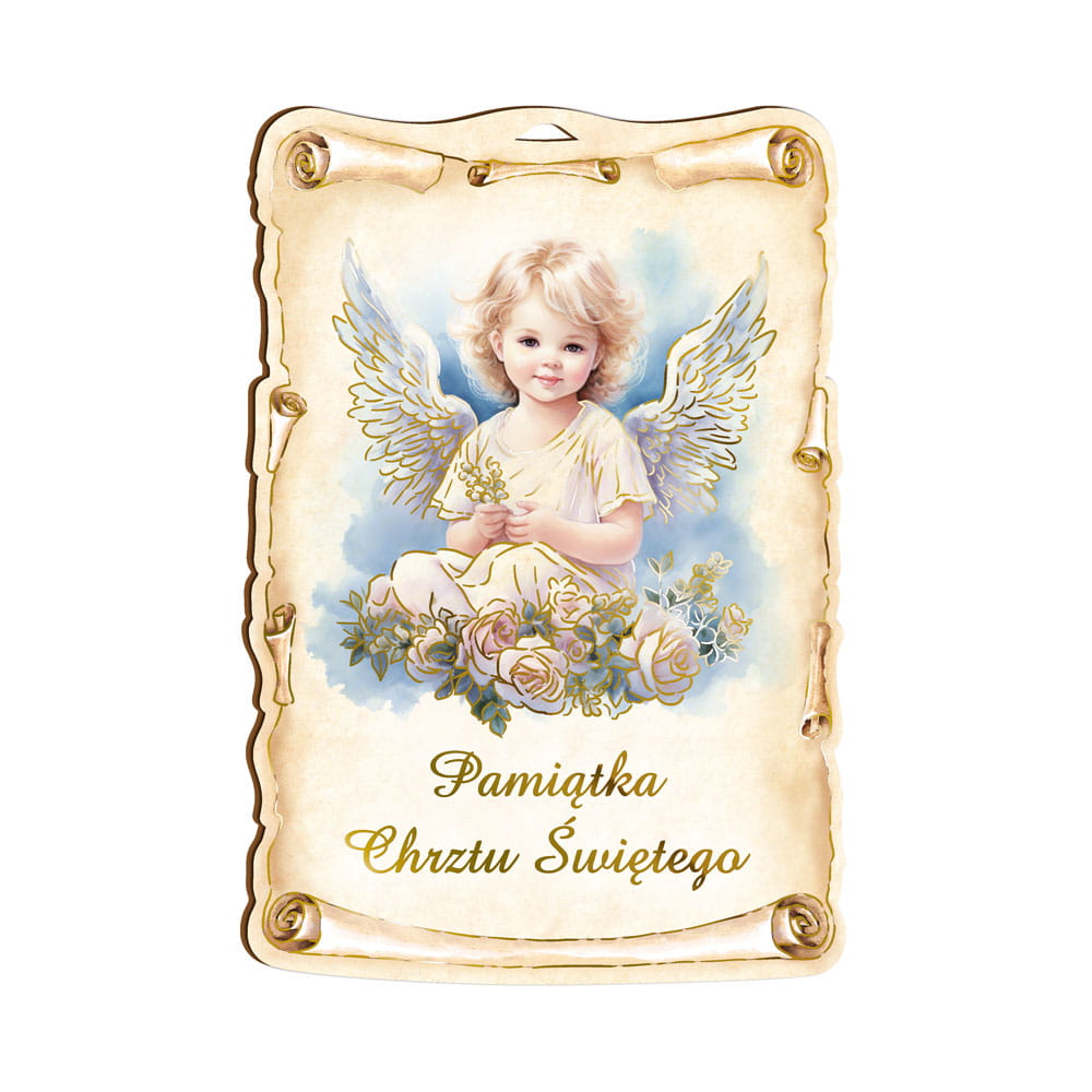 Pamiątka Chrztu Świętego, złocona - obrazek na desce