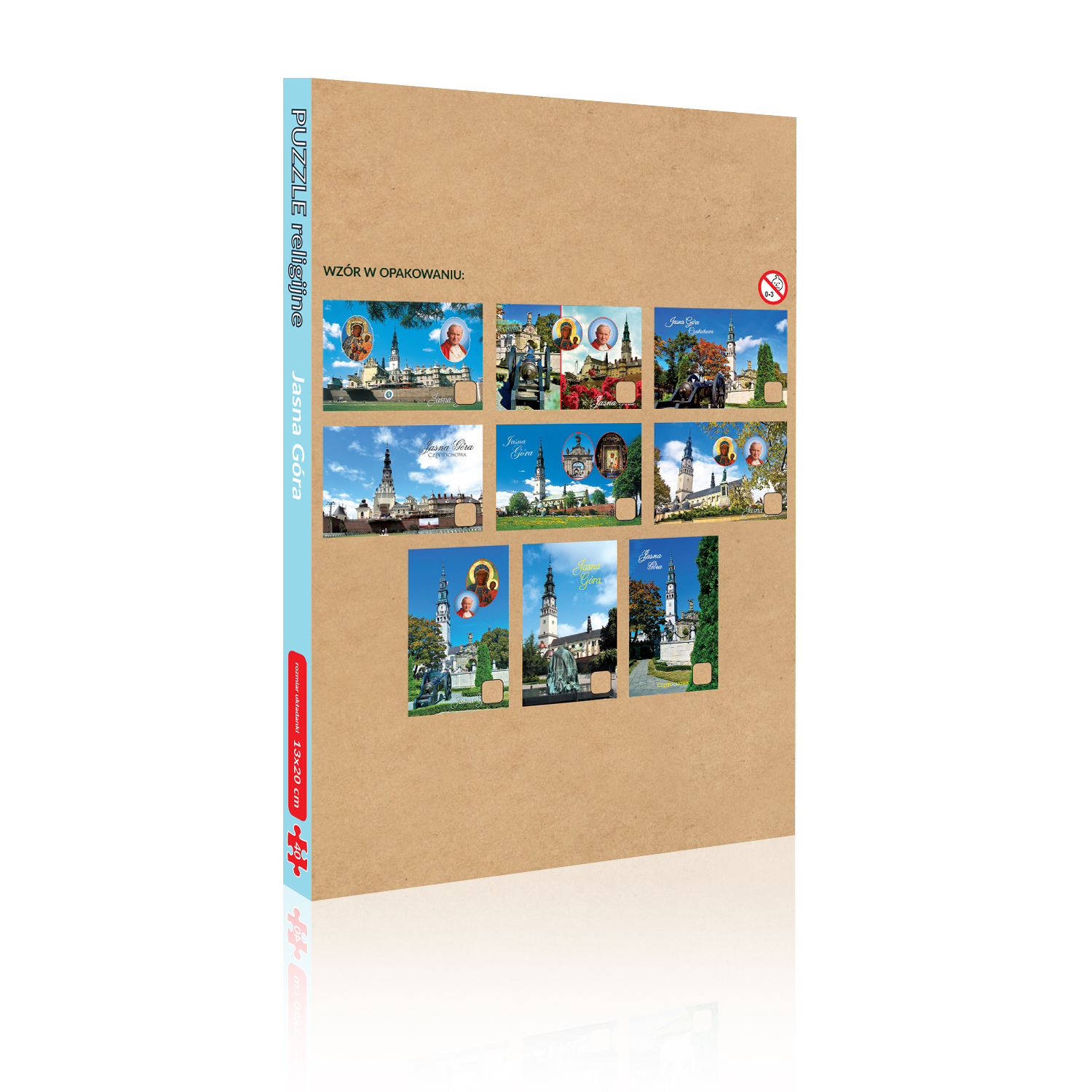 Przedstawiamy serię puzzli tematycznych w kolorowych pudełkach. Układanie puzzli to wyjątkowa zabawa dla dzieci, która rozwija ich intelekt, motorykę, wyobraźnię przestrzenną oraz myślenie logiczne. Produkt stanowi świetną okazję do zapoznania najmłodszych z istotą religii. Poszczególne puzzle przedstawiają Sanktuarium na Jasnej Górze. Puzzle religijne wykonane z tektury 1mm, obrazek składa się z 40 części.