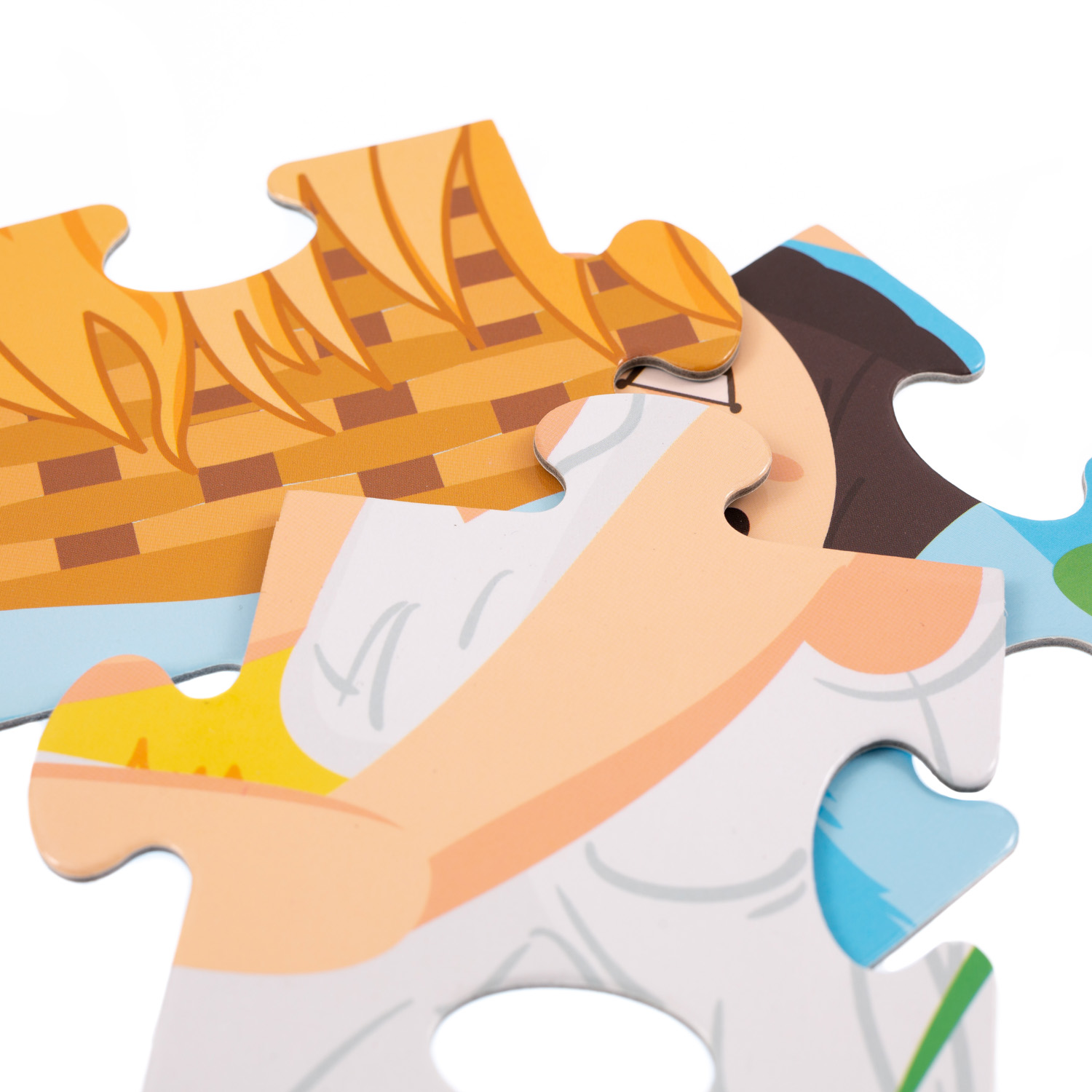 Przedstawiamy wyjątkową serię puzzli dla dzieci ukazującą najważniejsze wydarzenia z Pisma Świętego. Powyższy produkt zawiera komplet puzzli religijnych, który tematyką nawiązuje do niezwykłej historii Mojżesza-sceny znalezienia malutkiego Mojżesza przez córkę Faraona. Puzzle religijne to wspaniała zabawa nie tylko dla najmłodszych, ale również dla całej rodziny. Bardzo dobrze sprawdzą się jako upominek o pięknych walorach wizualnych i edukacyjnych.