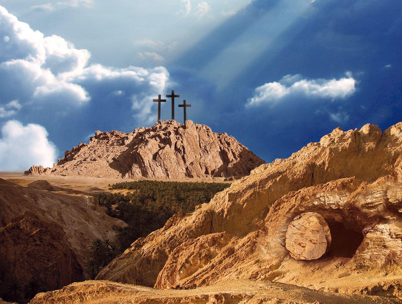 Tło do Grobu Pańskiego, trzy Krzyże na górze Golgota 155x140cm